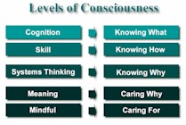 Going beyond what and how Current organizational practices - organizational design, HR systems, training, OD, Business Process re-engineering - are based on a Newtonian view, which regards organizations as "machines", and individuals as parts/cogs within the machine. This view regards organizations ("machines") as linear, multipart, equilibrial and as closed systems. In today's ever changing, fast paced world, where leaders are facing accelerating change at all levels, an opposite mindset has to be developed in learning. Today's organizations are complex, non-linear, non-equilibrial and have to be developed with an open mind-view. Most traditional learning interventions focus on developing knowledge (knowing what) and skills (knowing how). In an organization with a learning type culture, a culture in which learning is sustained, learning interventions need to focus on meaning for the learner ("caring why") and developing a mindset of being mindful ("caring for"). This "caring why" / "caring for" is affected by internal and external influences on individuals. "Meaning" and being "Mindful" comes from within the individual and for this reason we believe that all learning interventions need to be learner-centered. |