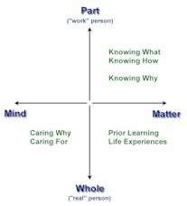 Going beyond what and how Current organizational practices - organizational design, HR systems, training, OD, Business Process re-engineering - are based on a Newtonian view, which regards organizations as "machines", and individuals as parts/cogs within the machine. This view regards organizations ("machines") as linear, multipart, equilibrial and as closed systems. In today's ever changing, fast paced world, where leaders are facing accelerating change at all levels, an opposite mindset has to be developed in learning. Today's organizations are complex, non-linear, non-equilibrial and have to be developed with an open mind-view. Most traditional learning interventions focus on developing knowledge (knowing what) and skills (knowing how). In an organization with a learning type culture, a culture in which learning is sustained, learning interventions need to focus on meaning for the learner ("caring why") and developing a mindset of being mindful ("caring for"). This "caring why" / "caring for" is affected by internal and external influences on individuals. "Meaning" and being "Mindful" comes from within the individual and for this reason we believe that all learning interventions need to be learner-centered. |