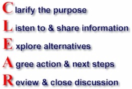 Transformational Leadership (optional) How to facilitate profound learning and change using evolving interventions ie participative design, etc. in transforming systems to achieve systemic sustainability. Leading in turbulent times. Core Skills Central to the integration of learning is the development of "Core Skills" which form a foundation throughout the various learning interventions. The following interactive skills and process form the foundation for all interventions having an interactive component: CLEAR - Core Interactive Skills There are 5 behavior clusters that we have identified as critical to the success of any interaction. These clusters make up the CLEAR Skills of: